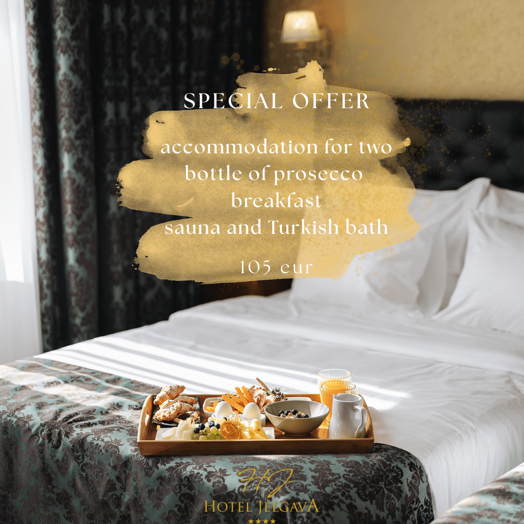 Enjoy a warm break in the heart of Jelgava! ❤️ Special offer at a great price to recharge before the winter season: ⭐️ accommodation for two for 1 night ⭐ breakfast ⭐ sparkling bottle of Prosecco in the room ⭐ sauna and Turkish bath Offer price: 105 EUR Available from Sunday to Wednesday 27.10. to