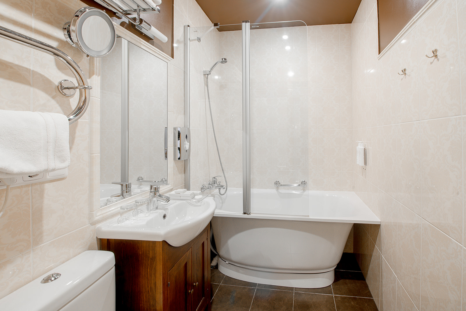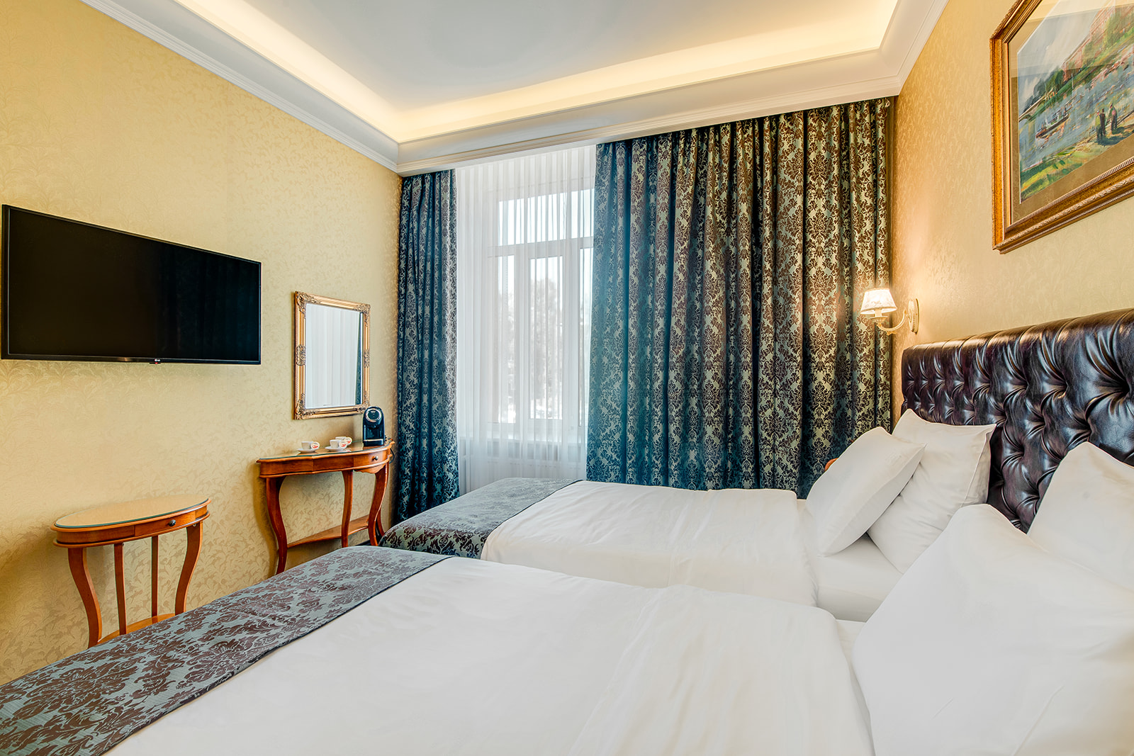 Numurs atrodas otrajā stāvā ar skatu uz viesnīcas iekšpagalmu. Numurā ir divas istabas, vienā no istabām ir divas vienguļamās gultas, otrā istabā viena vienguļamā gulta. Vannasistabā ir pieejama vanna.